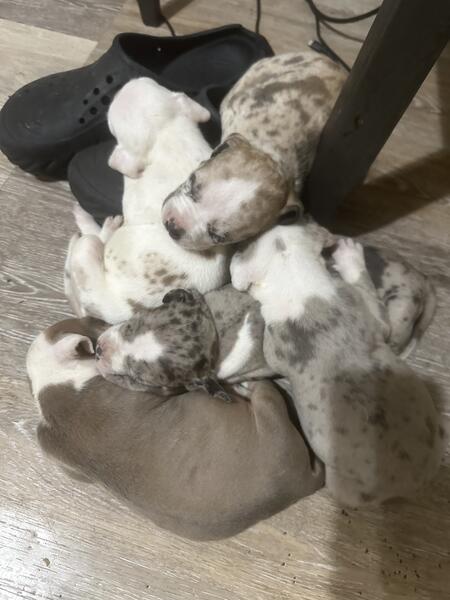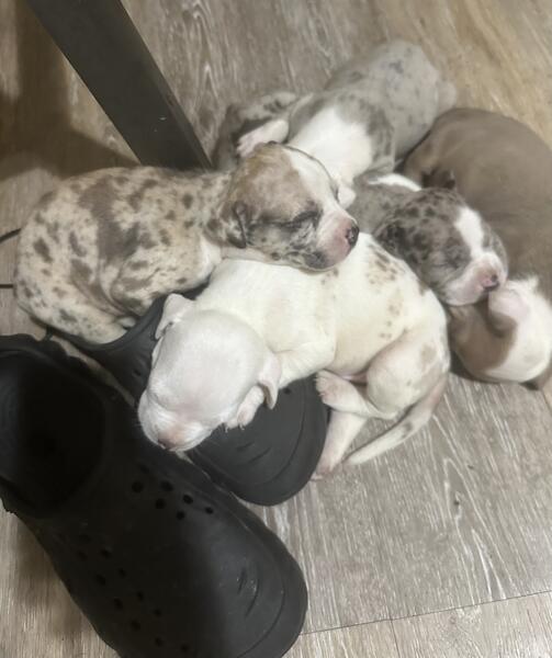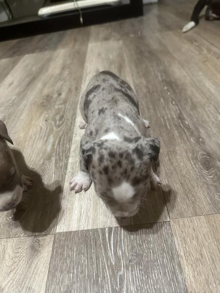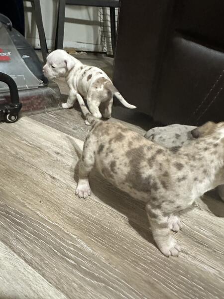message rtowns22 about this ad Born: June 20 2025 2 tricolor - 300 3 Merles - 400 1 tri-merle - 500 firm Pick two for 600 excluding tri-merle (219) 342-8781 Just got teeth ready for soft food Chicago |