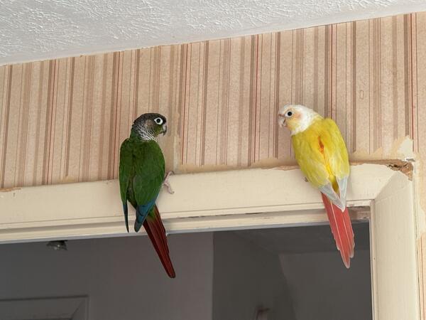 message jblcs520 about this ad For sale. Female SunCheek Conure and Male Double Yellow sided GreenCheek Conure. Both are just over a year old. Comes with birth certificates. They are very tame but you could breed them if you wanted to as they are very bonded to each other but I have know interest in breeding. Asking $300.00 JUST LOWERED THE PRICE Was $500 Need to move ASAP |