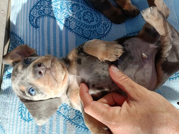message dachshundkaninchenmini about this ad Perro salchicha arlequn azul, criado en un ambiente familiar, padres importados de Hungra. Hojas con desparasitacin a partir de los 15 das de edad, con vacunacin completa, vacuna antirrbica, chip a nombre del nuevo propietario Para ms informacin visita mi pgina de Facebook Tita costa, si ests interesado comuncate al +351913553865. Con los mejores deseos, |