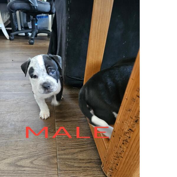 message mlfreeman2708 about this ad 1 girl & 4 boys left mom is full blooded bully dad is bull terrier (pit bull & jack Russell mix) they were born March 2nd 2025. Mom was given a supplement while nursing to help produce healthier milk for the pups called milk made. They are very healthy adorable pups! I do require that you bring the 1st vaccination shots with you when you come to take a puppy or puppies home with you. |