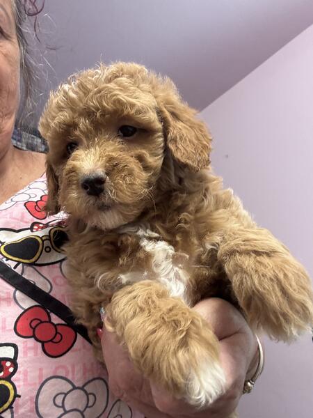 message mermaidslair about this ad 6 sweet and cuddly, petite mini goldendoodles ready for meaningful relationships These little guys were born on April 15. I have two boys and four girls. Parents are my personal pets, ( DNA tested through Embark) These guys are Petit mini multigenerational parents are both 22 pounds they are 3/4 poodle. These little guys do not shed. These puppies were born in my bedroom. They were Vet checked first set of vaccines and they are ready to go Please contact me at 401-688-0884 Depending on your location and your scheduling, I may be able to help meet you or deliver them |