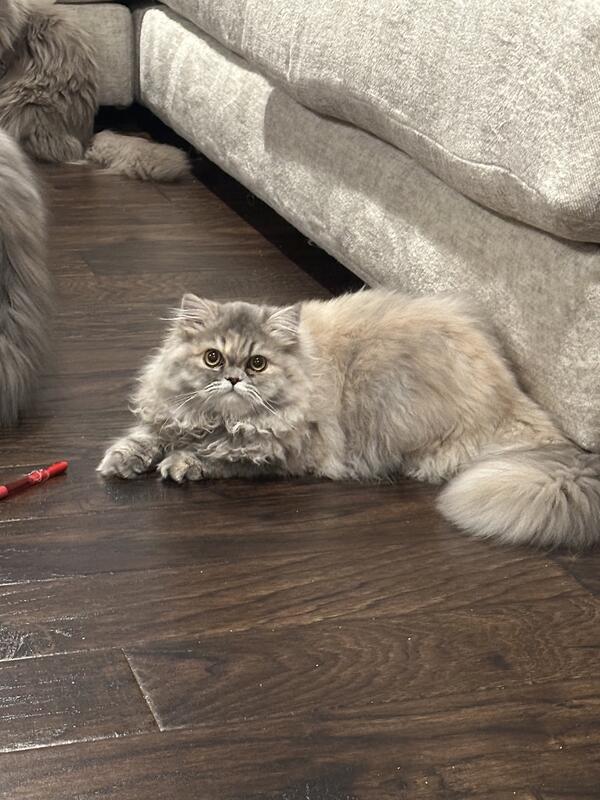 message bobbijo about this ad Meet Silver The Sweet and Spirited Soul You Have Been Looking For Silver is a Blue Cream Tabby Doll Face Persian with Champion Bloodlines, born on May 1, 2025, and is ready to go to her forever home today - She has a heart as lovely as her looks. She is a dainty little beauty with a silken coat touched by hints of blue and cream, and her sweet, expressive eyes seem to hold a quiet wisdom. Gentle and affectionate, Silver has a calm, loving nature and a softness that makes everyone around her slow down and smile. Whether she's curled up like a cloud or delicately prancing through the room, she brings grace and warmth wherever she goes. Feel free to message me with any questions. COMES WITH: CFA registered. Age appropriate shots and deworming. Well socialized, litter trained, accustom to regular baths, nail trimmings and brushing, limited health guarantee, if a vet states that the kitten is not healthy, it can be returned for a full refund. Kitten will come with a blanket with their mothers sent and favorite toy, transition food, kitten guide, picture of mom and dad and a copy of mom and dads pedigree. Serious inquiries only please. blueandpinkcattery.com message bobbijo about this ad |