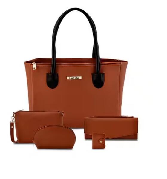 message rohinee about this ad It's Combo of 5 pieces that include Main bag, Cross Body Bag, Pouch, Wallet & Card Holder Faux Leather Inner Material: Premium Cotton Spacious & International Design: The Handbag has open area inside it,which can be able to organize your items in it nicely Outer Material: High Premium Quality Faux Leather Height: 28 cm Wipe with clean, dry cloth httpsajiio.in/e088BYt |