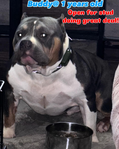 message knight87 about this ad Looking for the laddies got a great stud deal going on right now to approved female ABKC great pedigree Buddy 22 months Measurements as of now Head 23 inches Neck 23 inches Height 13.5- 14 inches He is ABKC pocket Lets talk my boy ready Inbox me dont want to miss this deal NLK GRCH AZARI x NOB BLUEY In Nc Also I have pictures of his mom and dad as well as ped 336-442-6665 |