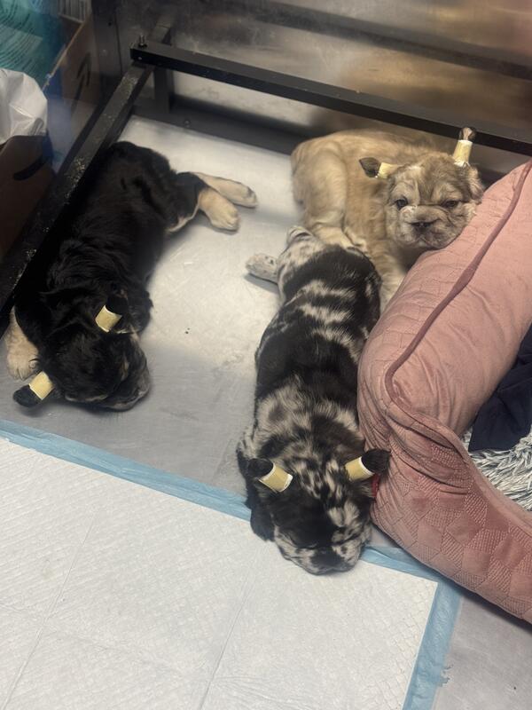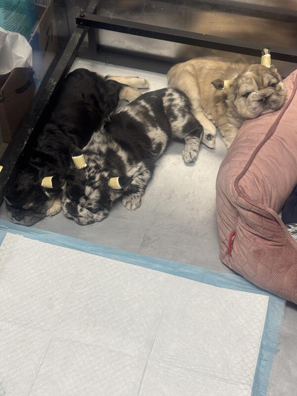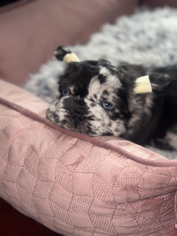 message wavypup about this ad We are proud to present to you The Powerfluff Girls! These 3 beautiful female pups are currently available and ready for their human companions. They are 3 months old. Female 1 - Buttercup is a fawn-sable big rope fluffy frenchie. She is the most dominant/outgoing of the 3 pups. She is very friendly and always loves a good rub down. She is currently 12.1 pounds. Female 2 - Bubbles is what you would call the main attraction of the 3 girls. She is a Harlequin merle big rope fluffy frenchie. She is the smallest of the 3 pups. I am anticipating she will have 2 different colour eyes (heterochromia) as one of her eyes is turning brown while the other eye has remained blue. She is currently 11 pounds. Female 3 - Blossom is a black and tan fluffy frenchie. She did not receive the big rope genetic from her father. She is the sweet shy girl out of the 3 of them, but still outgoing. I will mention Blossom loves her food! I would recommend getting her a slow feeder. She is currently 11.3 pounds. Chi-Chi Chanel is their mother. She is a Harlequin merle fluffy carrier frenchie, while the father, Pinkzilla, is a rojo and tan visible fluffy frenchie. Both parents are health and dna tested. All 3 pups are socialized with children and other dogs. They love to play amongst each other and will do so until they fall asleep. They are up to date with 2 rounds of vaccinations and deworm x3. They currently eat Acana puppy formula mixed with raw beef. They are currently crate and potty training. All 3 pups have been cleared healthy by a reputable veterinarian. They have also been health and dna tested. Pups will be CKC registered, as Chi-Chi is CKC (Canadian Kennel Club) registered and Pinkzilla is AKC (American Kennel Club) registered. For more info, send us a direct message. Follow us on instagram @wavypups message wavypup about this ad |