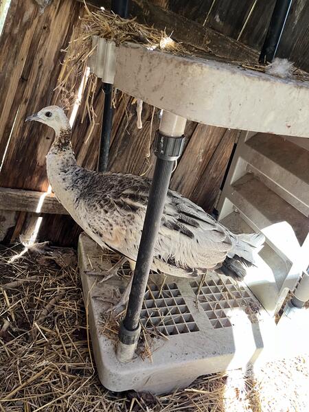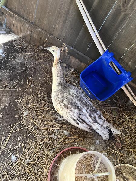 message charleszeringue about this ad 1.5 years old adult peahen. Mild mannered and healthy. Silver Pied is a rare and striking color variety with mostly white plumage and light silver accents. |