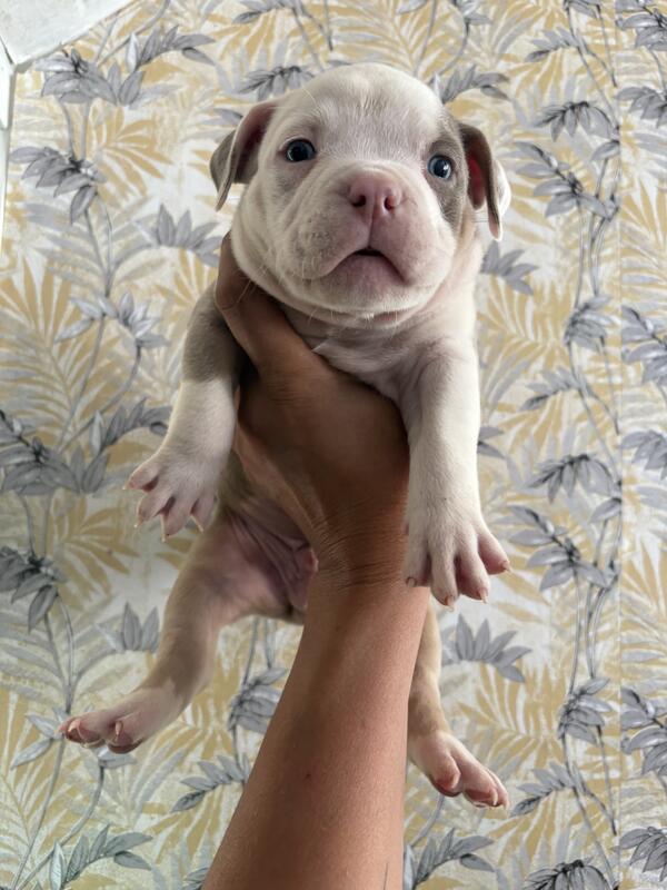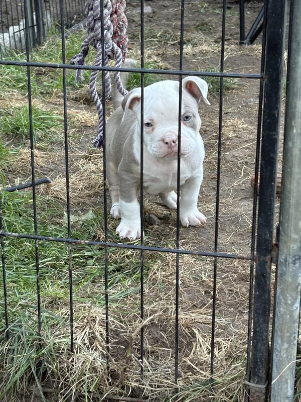 message the6bullies about this ad $3,000 CAD SOLD [located in Oshawa Ontario ] Born August 16, 2025 Meet this handsome little guy a male piebald micro American Bully puppy with tons of personality and a heart full of love! Hes super friendly, playful, and loves attention. This little dude has that perfect micro build short, stocky, and full of confidence. Raised with care and lots of love, hes well-socialized and used to being around people and other dogs. Details: Breed: Micro American Bully Born: August 16, 2025 Sex: Male Color: Piebald (white with patches) Health: Vet checked, dewormed, and up to date on shots Ready for his new home: [nov 02 2025] If youre looking for a loyal, loving companion with the cutest personality and an awesome look, this little guy is it! Message me for more info or to come meet him! Serious inquiries only, please. * no papers THE 6 BULLIES ON INSTAGRAM, Facebook, & Pinterest |