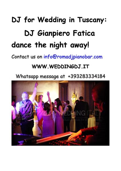 message weddingdjitaly about this ad DJ with long experience at clubs, radio, animation villages, private parties, events, weddings, with repertoire from the 60s - 70 - 80 - 90 to today, with the classic Italian and international danceable and the latest, organizes fantastic evenings, with audio and lighting system, for all types of celebrations in Italy Quickly info, mobile or whatsapp +393283334184 info@weddingdj.it weddingdj.it |