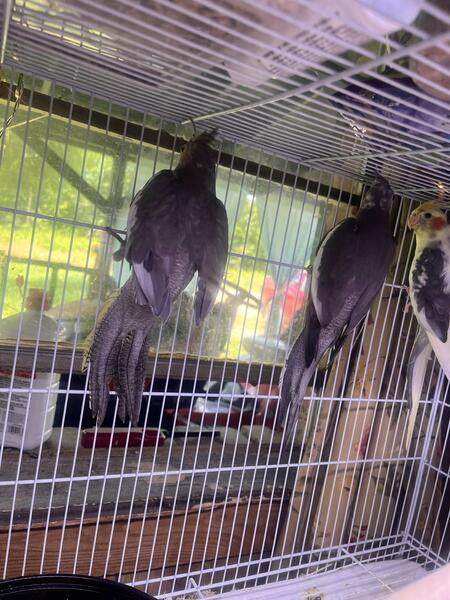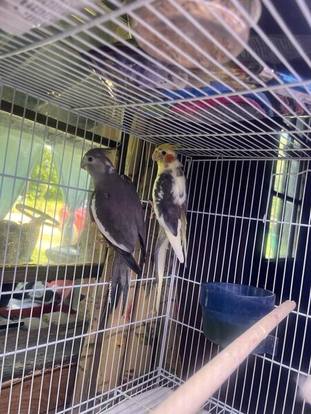 message mustangking2005 about this ad 3 cockatiels with breeder box and cage. In stores these would cost you $400 a piece or more. The male you can handle him and hell chatter up a storm. The white and grey one you can handle once outside the cage. Sometimes while in the cage. The grey one with the orange cheeks shes still young and needs handled to tame. $600 firm. That saves you $600 plus buying the cage and all. |