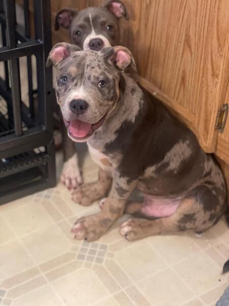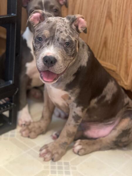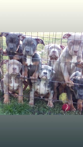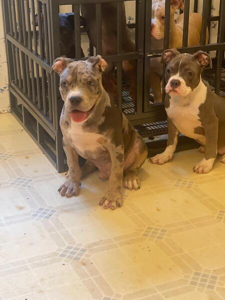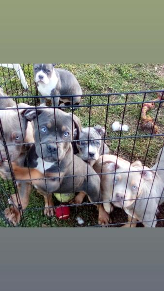 message godbodybulliesva about this ad 2 Puppy litters available for serious inquiries only (Classic to XL sizes) -1st litter *6 males avail - (4 Lilac Tri & 2 Blue Tri Bullies) -2nd litter *2 females & 1 male avail - (1st female Blue Ghost Tri, 2nd female Bi Tan/White color & the only male is a Blue Tri Merle Located in Clarksville Virginia (Delivery Available) |