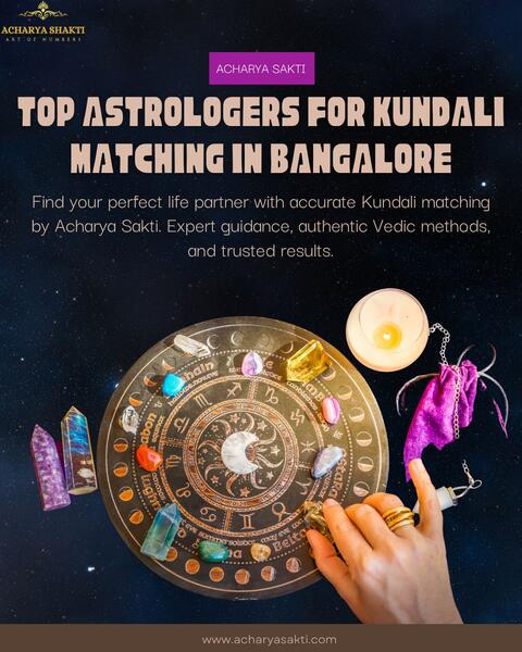 message acharyashakti about this ad Acharya Sakti connects you with the top astrologers for Kundali Matching in Bangalore, offering precise horoscope compatibility checks for a happy married life. Our top astrologers for Kundali Matching in Bangalore use authentic Vedic methods to ensure accurate results and lasting harmony between couples. With personalized guidance and years of experience, Acharya Sakti helps you make informed decisions in finding your ideal partner. Book your consultation today for trusted and reliable Kundali matching services in Bangalore. Visit us at |