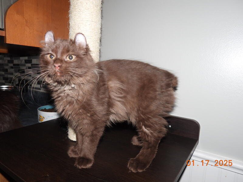 message empirestatelynx about this ad DOB:08/28/2025 Male Highlander Solid chocolate, long hair, poly front, novel tail variant (naturally short tail) DNA tested clear, carries 1 copy of chocolate, 1 copy of cinnamon, 1 copy of color points, 1 copy of solid I was holding back a few males till I could decide which one to keep, this was an extremely hard decision, I love them all. OMalley is so lovable. He weighs 6.14 pounds & going to be a big boy! My email is @ gmail com Call me at 607-381-0259 Carol |