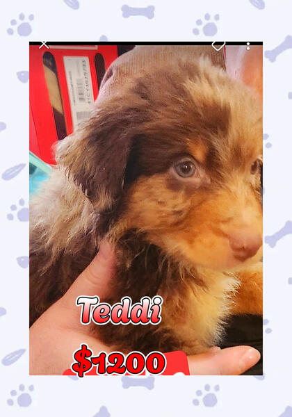 message aussieblueeyes about this ad We have 9 Australian shepherd pups. Their mom weighs 44 lbs and Daddy 68 lbs. They come vet checked with a health guarantee, shots,wormed,tails and dew claws done. We will. Deliver up to a 100 mi radius of 44709 $350-1150 depending on the pup and colors. Cherannadkins@yahoo.com |