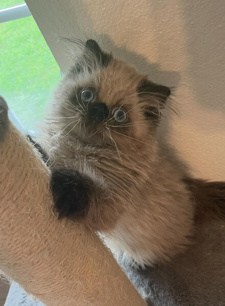 message showcats3 about this ad Teddy is a GORGEOUS 5 month old seal point male Himalayan (Persian) kitten thats available. He has big round blue eyes, small ears and looks like a living, breathing teddy bear Hes extremely affectionate and loving. I call him my Velcro kitty because he follows me everywhere! Hes a wonderful lap kitty but is also very playful. Hes the perfect age for playing if you have kids or other cats. Hes had all of his vaccinations (except rabies because hes an inside only cat) and all of his dewormings. If purchased as a pet, hes required to be neutered. Hes $750 without CFA papers or $2500 with papers but No breeding rights. Both parents and siblings are top show cats. Parents are DNA health tested clear. Please feel free to ask me any questions you may have |