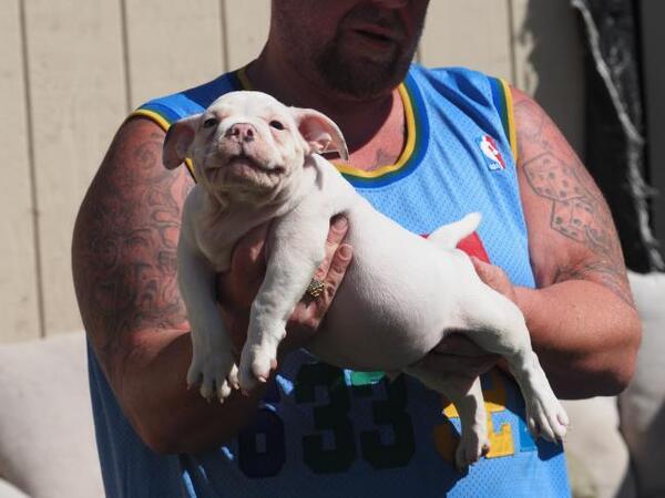 message csk1 about this ad Sherm x Slush 10 week old pup pied white and chocolatehe's the biggest in the litter massive frame full tail pedigree is tap in for more info |