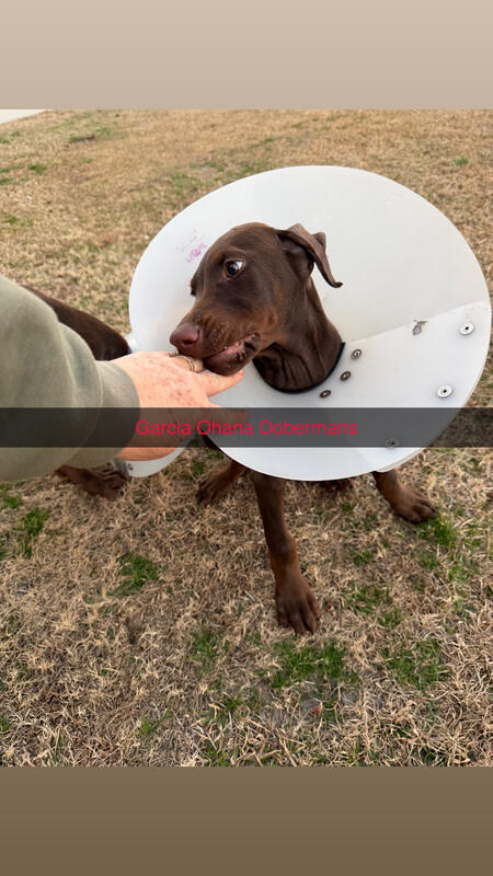 message dobegirl about this ad 11 week old AKC -tails docked - dew claws removed - ears cropped - its on shots and dewormings - vet checked cleared Black & rust- red & rust -red - black- females and males Contact 910-290-2000 for more pics/videos and information |