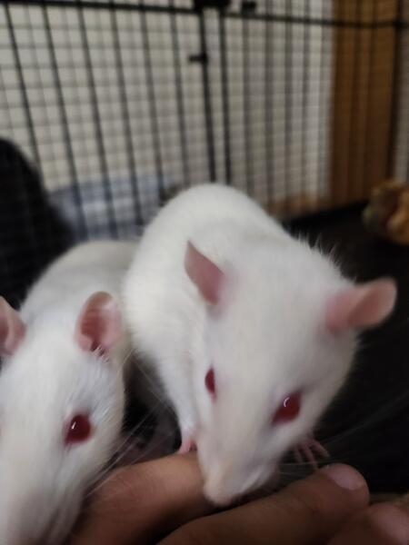 message kenzav about this ad I am looking for a home for my two pet rats (Goobo and Plague It is a male and a female. The male is very friendly and is ok with chilling on your shoulder, while the female is skittish and likes her alone time. Both are very loving rats and love to eat. I love these two to death, but I unfortunately can't keep them. Since the female is very skittish she sometimes likes to do a small bite to try to see if your are a danger to get, but she doesn't bite hard. She just gives a small nibble. I have never been bitten by these two sweethearts, they only nibble softly. Please if anyone is looking for two rats, reach out to me. These two really need a home and I would love to help them find a loving family. I am including some stuff to come along with these little guys, including their running wheel, a cube they love to hide in, and possibly some other toys. |