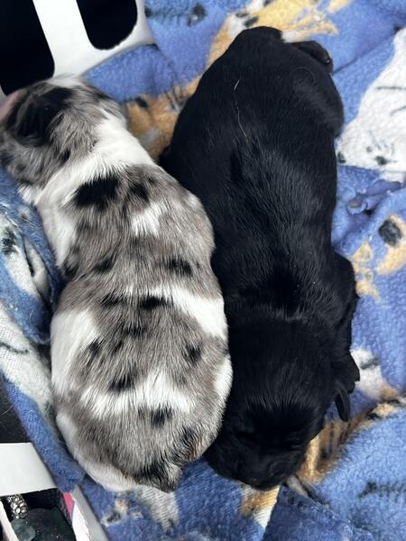 message fel582 about this ad I have 2 males Cocker Spaniel they were born june 13th and will be ready for their forever homes on Aug 1st . Puppies have tails docked and dew claws removed, and will leave vet checked along with current vaccinations and worming. $1000. Deposits are 250. and will hold your choice of pup until he is ready to join your family. For more info message me at 606-356-9210 i will post update pics of them weekly |