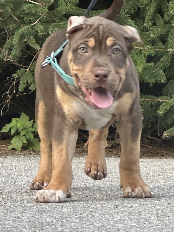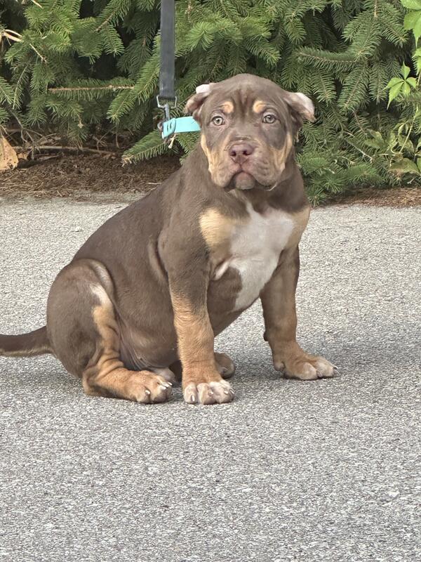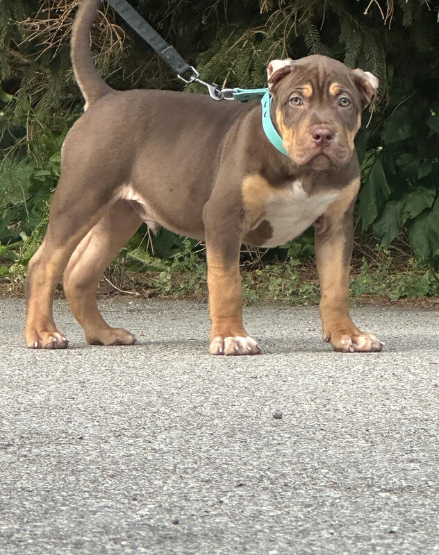 message championbullies about this ad XL ABKC Registered American BullyPuppies Elite Bloodlines & Family Raised! - Call or Text 647-486-3572 - Social Media Instagram @champion.ontario.bullies Facebook - Champion Ontario Bullies - Looking for a truly exceptional bulldog to join your family? We have two stunning XL chocolate tri-coloured male ABKC registered American Bully puppies available, ready to find their forever homes! - These aren't just any American Bullies; they come from some of the best bloodlines in the world. Their sire (father) hails from France and is a direct son of the renowned Bossy Kennels Jumanji. Their dam (mother) is a proud granddaughter of Bossy Kennels Goodbar. This pairing ensures puppies with outstanding genetics, structure, and health. - You can expect these pups to grow into impressive XL bulldogs, weighing 100+ lbs, with a muscular, thick, and short build. Both parents are Embark genetic health tested, and the father is also OFA health tested, guaranteeing you a healthy and robust companion. - Our puppies are currently 10 weeks old (born June 6, 2025) and will be ready to go to their new homes after 8 weeks of age. They've been raised in a loving family environment, receiving basic puppy training, crate training, and early learning skills. They are well-socialized, having been introduced to children and other pets, making them incredibly friendly and playful the perfect addition to any family! - What's included with your new puppy: * Basic puppy training started * Genetic health guarantee * Lifetime breeder support * First set of puppy vaccinations * Deworming up to date * Family raised and socialized with children * Guaranteed XL size puppies * Delivery / Shipping Available - Don't miss the opportunity to bring one of these magnificent and well-socialized XL American Bully into your life! - For more information or to inquire about purchasing one of our puppies, please feel free to contact us at 647-486-3672. - social Media - Instagram @champion.ontario.bullies Facebook - Champion Ontario Bullies message championbullies about this ad |