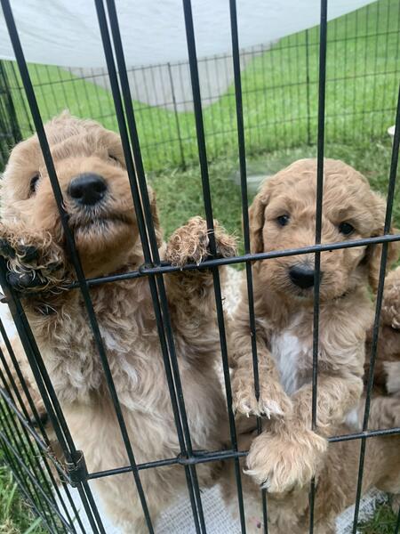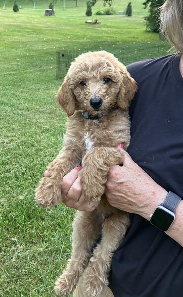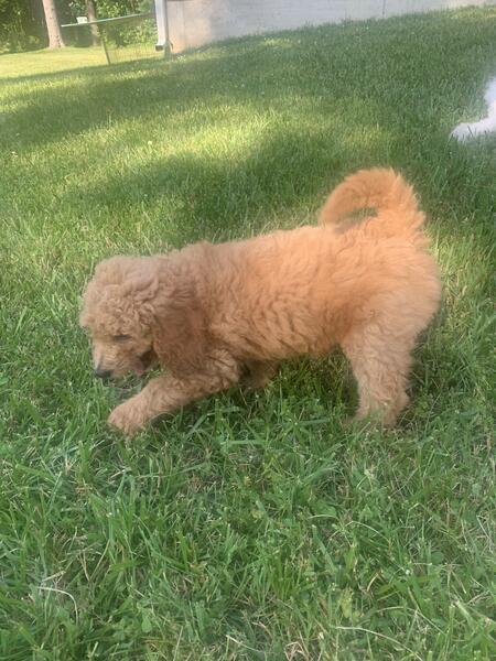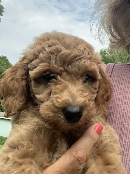 message micki about this ad Red and curly! These little pups are smart and loving. Mama is an F1 English doodle, Father is full poodle. Puppy will be on the smaller side weighing aprox 25 pounds. Parents have had all of the health tests. Shots started and dewormed. Vet checked. F1B puppies are considered hypoallergenic and low shedding. The litter was whelped on 4/25. Ready for her forever home. They have been kennel trained and nearly house broke. We have 20 grandchildren so the puppies have been handled and loved by many. Very socialized! Contact me by text to 231.349.O315. |