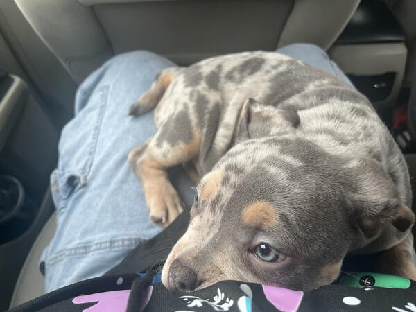 message gino517 about this ad Have a 9 week old blue merle male bully with green eyesHes very loving and comes from a very loving breeding homehe will be short but very stocky looking to get 2500 without papers or 3500 with papers |