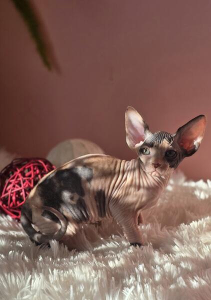 message olgasphynx about this ad We are happy to present our gorgeous litter of Sphynx kittens born on September 28. This litter includes several stunning girls with rare and beautiful colors such as: Calico Bicolor Harlequin Solid Black Each kitten has a unique appearance, sweet temperament, and bright expressive eyes. Raised with love and care, they are all very affectionate, playful, and well-socialized. Your kitten will go home with: First vaccination Deworming veterinary health check Starter food (dry & wet) Soft blanket with a familiar scent Sales contract Optional registration papers 200) |