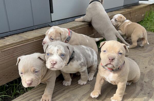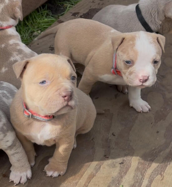 message spikedbullies about this ad American bully puppies looking for a forever home! Tri color males and females (4 available Merle tri color male also available. 7 weeks old. Price may be negotiable. ABKC registered parents. Very friendly family loving dogs and minimal shedding. The overall health and wellness of these dogs are my priority. Message me here or on Facebook and instagram @ Spikedbullies. Thank you and I hope you find the dog that suites you best! |