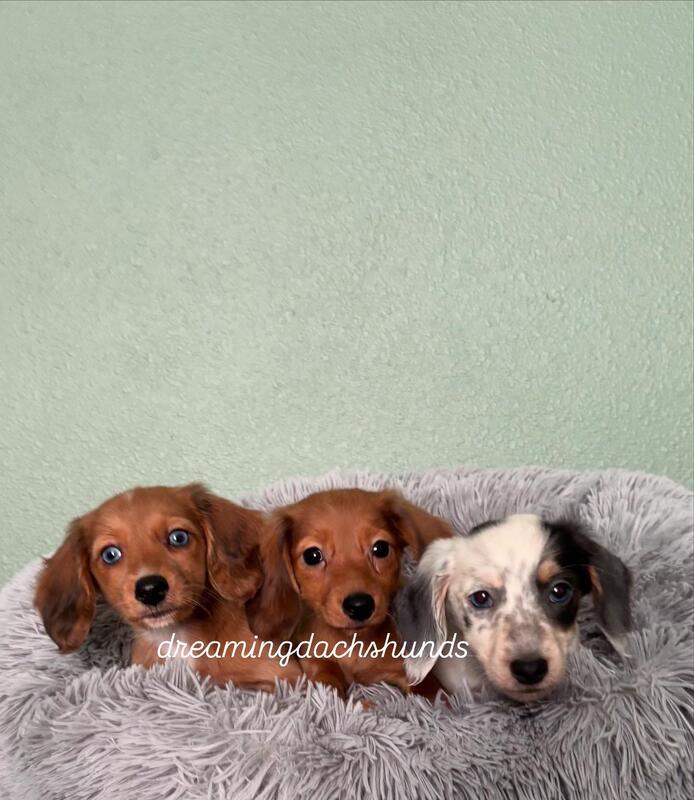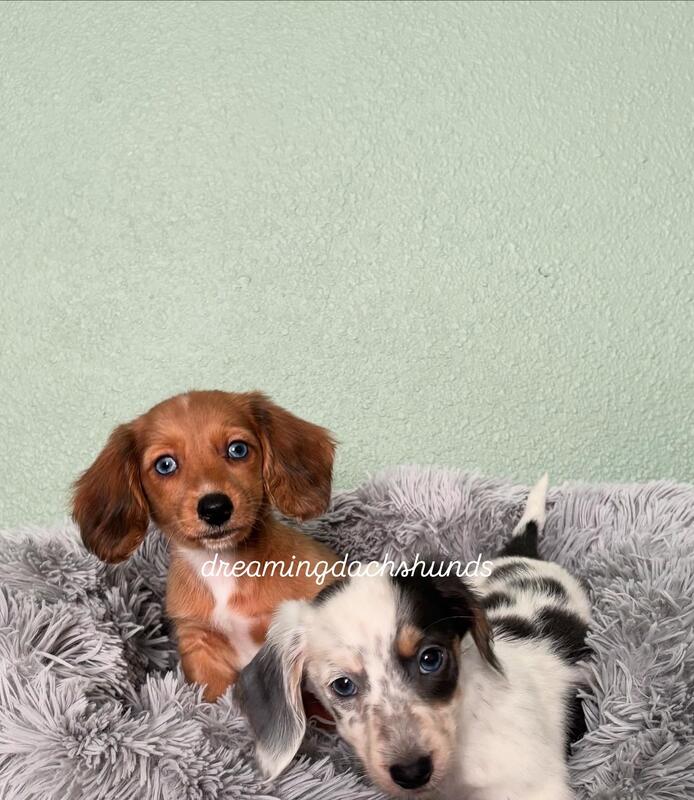 message liz240 about this ad Longhaired male miniature dachshund puppies ready for homes now they come with having age appropriate vaccines and regularly dewormed with records will have a fresh bath and nails clipped before leaving meet and pay in person I expect them to be around 8 lbs when grown they have been raised in our home very well socialized and taken care of I am asking $1250 for the brown eyed boy and $1450 for each of the blue eyed boys. Instagram dreamingdachshunds20 Nine four zero four four five seven two nine five |