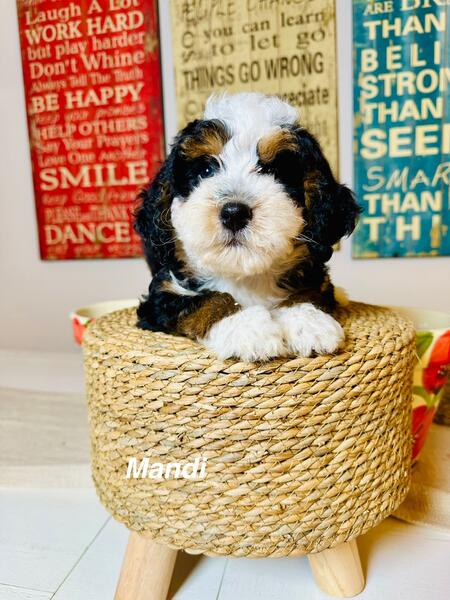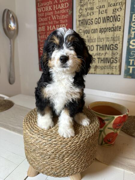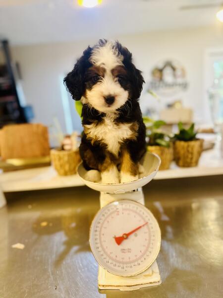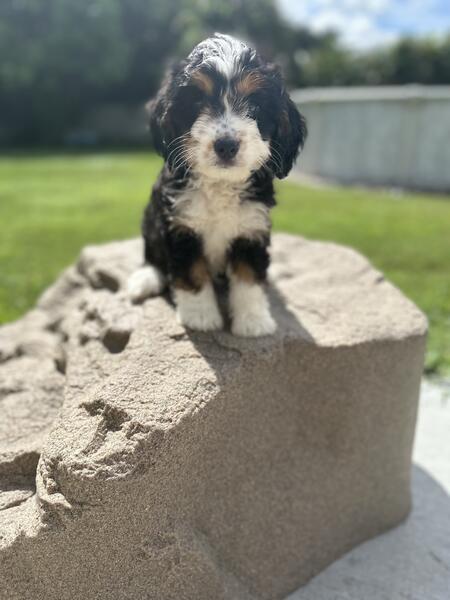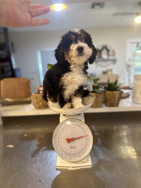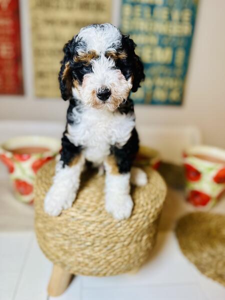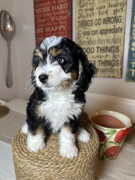 message jt2021 about this ad Mini Bernedoodle puppies, these guys will mature to 25-30#s come with Health Certificate and shots, training treats, food, toys, snuggle puppy, toys, leash, collar and harness Low to non shedding as a pup can be health tested parents |