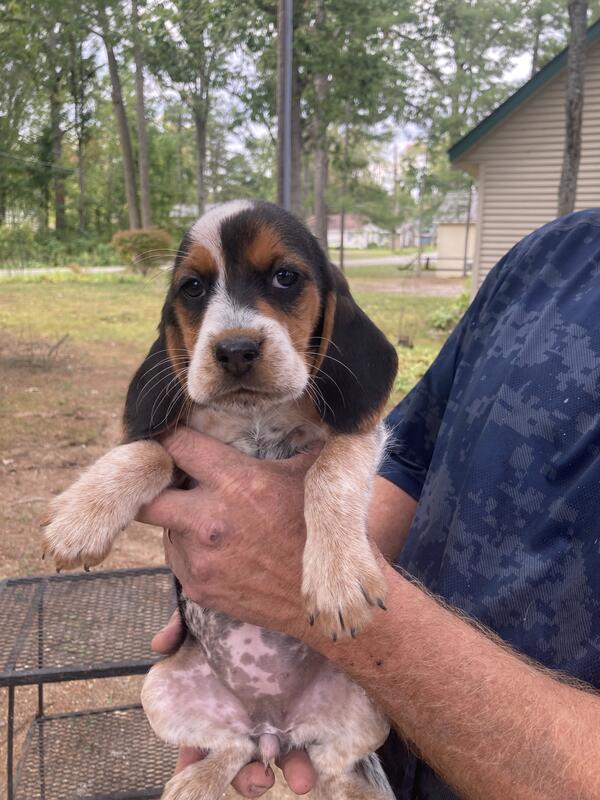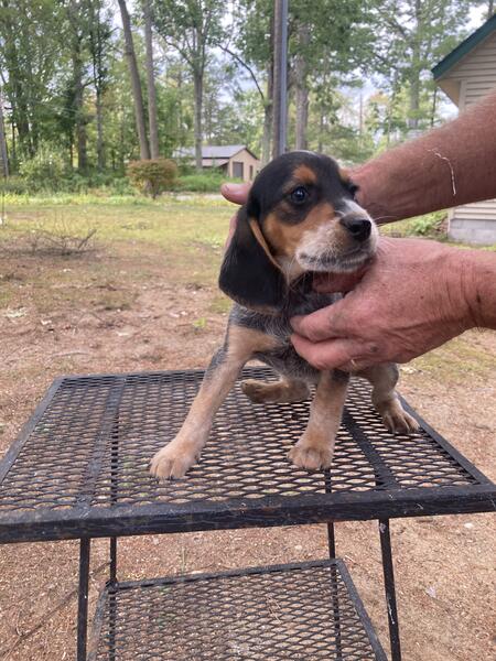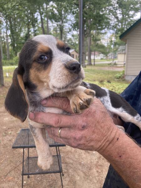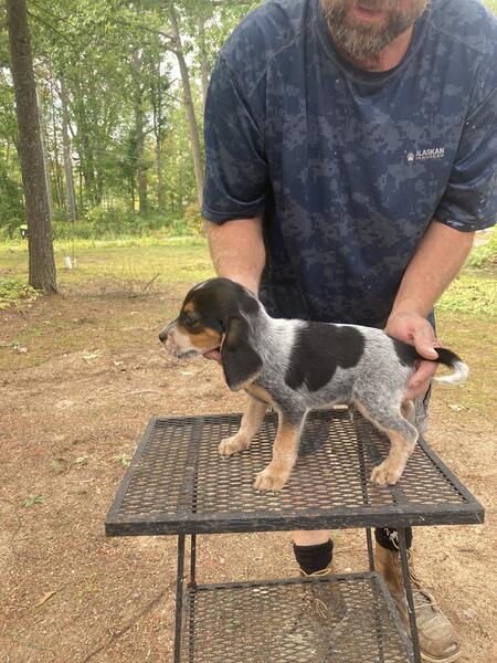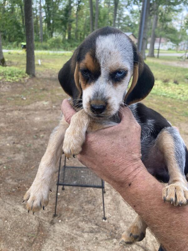 message almont about this ad Mom and dad akc Mom won the Midwest beagle gundog federation championship derby runoff at just over 2years old this February. She also won an open class arha hunt in July and won best of show and best female. Shes a nice looking blue tick 14 1/2 tall with hard hunt upper medium speed and a great temperament. Dads a good hunter and nice loving temperament. 3 males 450$ and 2 females $ 500 . 11 weeks old . Call Jeff 810 417 811five |
