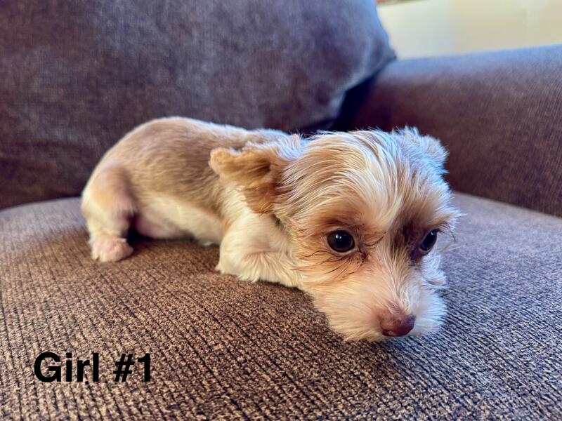 Chocolate And White Parti Yorkie Female (Pending) -- 600