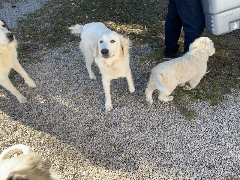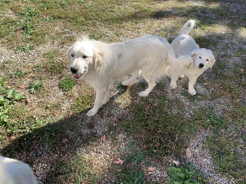 message farmer1954 about this ad One 9.5 month old male. He is not a pure Great Pyrenees; he probably has a little Australian Shepard in him. That means he'll be smarter and will probably live longer than a purebred. He has dewclaws. The mom is 11 years old and she is one of the best dogs we've had on the farm. The dad is the Champion of watch dogs; he sits in the driveway and protects us from squirrels and other terrorists. He's the big dog with the dark ears in the photo. |