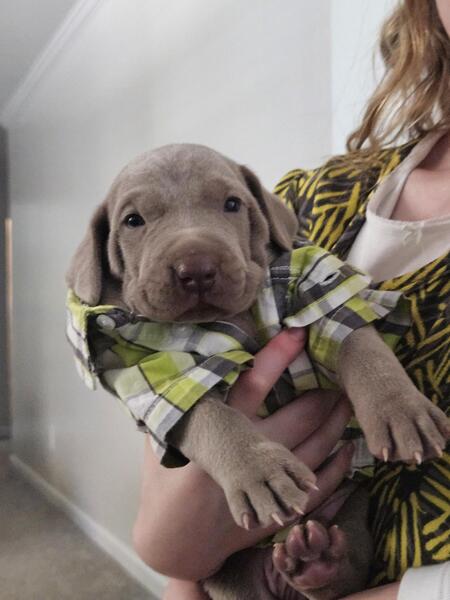 message micahalliedog about this ad I have a litter of beautiful weimaraner puppies ready to go call Richard at 704-860-8446 very playful good with kids and raised around children mime probably have them a little spoiled. |