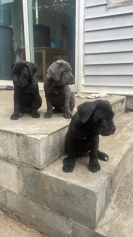 message bigdogzllc about this ad 4 female cane corso puppies available 3 black brindles and 1 grey puppy 8 weeks old call or text any time 6469966282 located in Brooklyn New York |