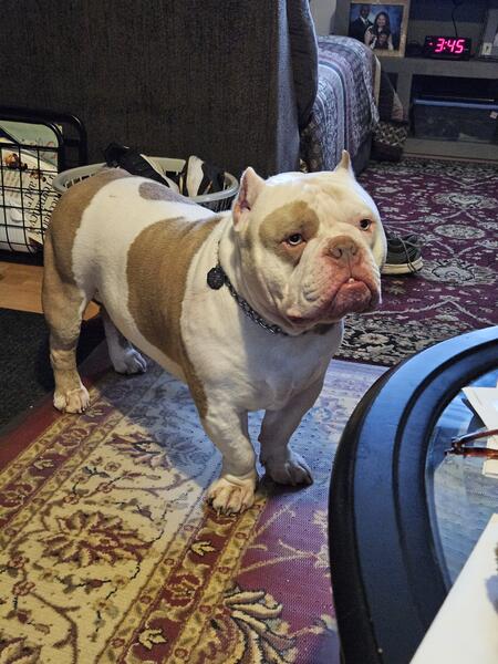 My name is Busta I'm 2year I do have paper I'm looking for Female Dog Micro Bully.