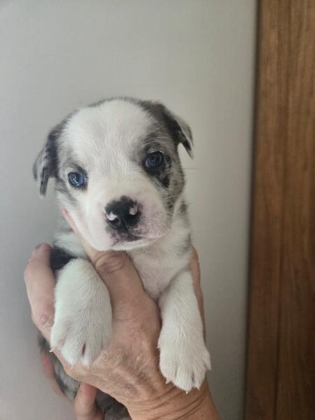 message saoirsebhean about this ad Meet Brigadeiro! 3rd born Merle Male to American Corgi Mama and Boston Terrier Papa, Brigadeiro is a stunning boy with gorgeous blue eyes! Second smallest in the litter, this guy sure is a cutie. He is a snuggle bug and loves play with his littermates and mama. Brigadeiro and his Littermates will be ready for their new Perfect Families on July 10th and by then will be UTD On Shots and Deworming, socialized with other dogs as well as cats, been on short car rides. They will have also had their feet rubbed, toes trimmed and teeth checked regularly to be on their best behavior for future vet visits! If you have any questions, would like more pictures or want to meet the puppies, please feel free to message me at 989-three four nine-3o32 |
