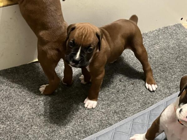 message hnelson427 about this ad AKC BOXER PUPPIES Our puppies come with limited AKC registration and over 20 years of healthy good lifespans of our Boxers. They will have their dew claws removed, tails docked, first round of shots, UTD on deworming, Pedigree Certificates, health certificate/health exam. We start housebreaking right away and our dogs are house pets in our home. We are not a puppy mill nor are there kennels in the backyard. Our dogs are part of our family and our puppies will only be placed with approved homes. Sharing our wonderful boxers great bloodlines and impeccable temperaments and personalities is something we are very passionate about. We appreciate the opportunity to provide you with the absolute best. $3000.00 Included in the price is a $300 non refundable puppy deposit. Call or text 8sixO3O27O74 |