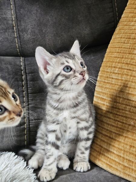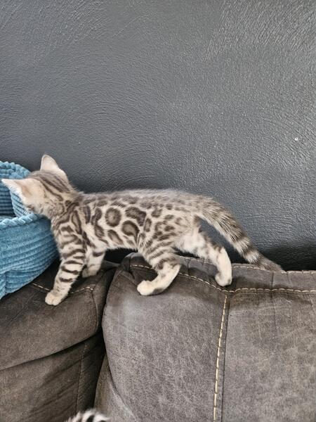 message rosedust about this ad Silver Rossette Bengal Kitten Male D.O.B 9-15-25. TICA REGISTERED. He is the largest kitten in the litter with a playful personality. Falls asleep on you after playtime Mom is a beautiful Snow Lynx Bengal and dad is a Silver Brown Rossette Bengal with Russian bloodlines. He will come with vet exam, first shots, food and familiar toys. More pics and videos upon request. Any questions text or call between 9am and 9pm 616 seven zero six two seven two nine. |
