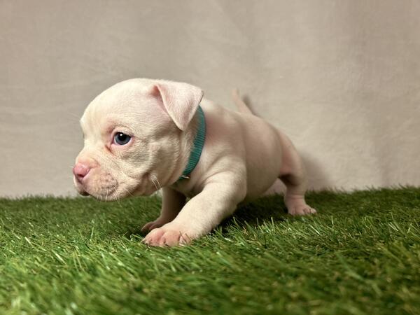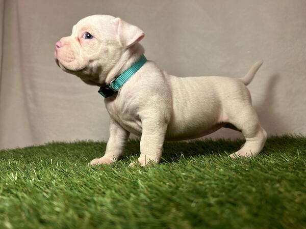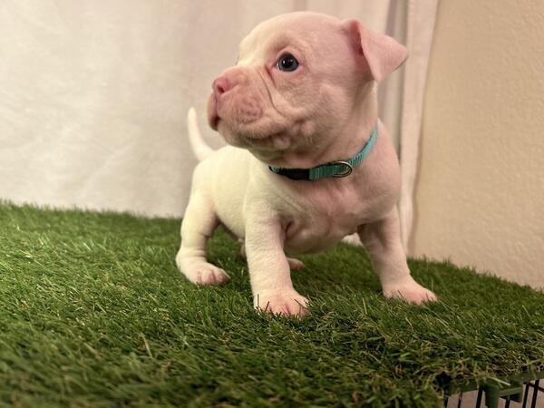 All white female American bully 8 weeks old ABR registered shots up to date and dewormed