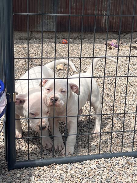 message afflisbullies33 about this ad $500 pet home $1000 with breeding rights. ABKC papers in hand. Vet checked. Ready to go. Great peds. Good structure and great feet. 2 all white not albino will have green eyes like dad and grandad. Heavy Rocko and ORO top and bottom. Feel free to call text or FaceTime .4192315158 |