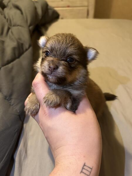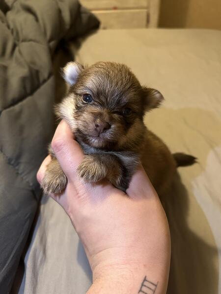 message pommom334 about this ad I have one male Pomeranian pup left out of a litter of three hes so beautiful hes going on 4 weeks old this Saturday he was born December 2 2023 hes a chocolate tan sable we are asking $500 no papers or $700 with papers he will be 4-5lb full grown |