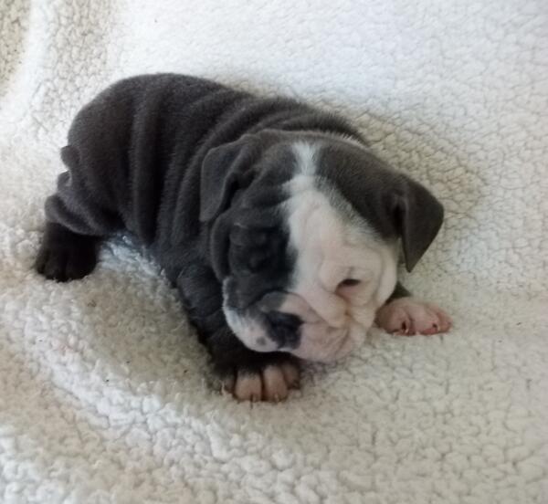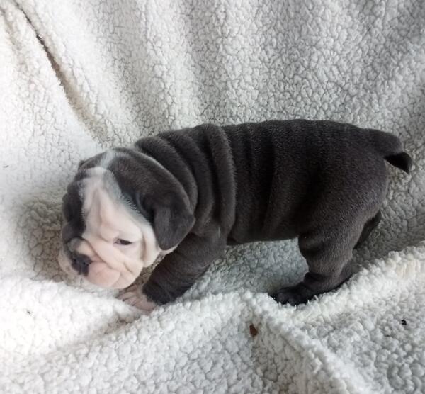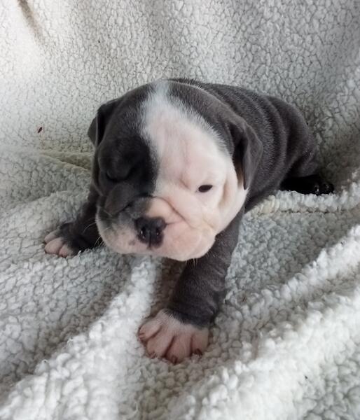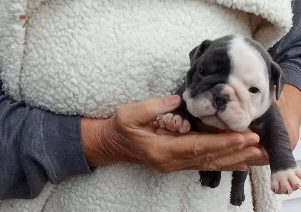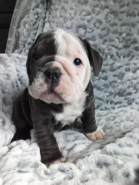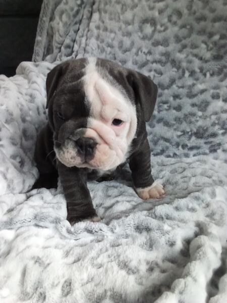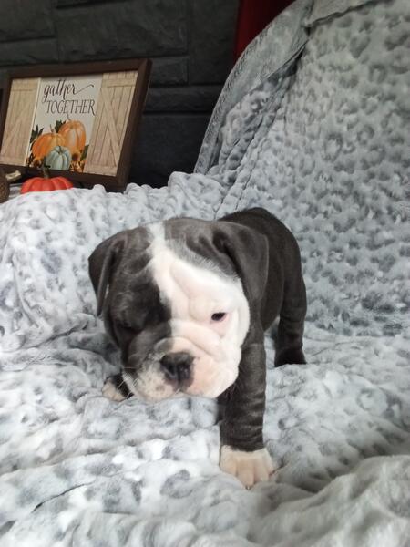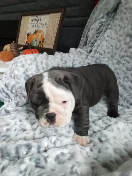 message myfureverlovinpets about this ad TJ is a handsome lilac color bulldog boy with a sweet personality.born on October 6,2025 . mom is an olde English Bulldogge and dad is an English bulldog.parents have great temperament.he will have his age appropriate vaccinations and dewormer also an overall veterinary health examination.30 day health guarentee.family raised and socialized.ready for his forever loving home on November 29 at 8 weeks of age.if you're interested in this sweet little boy contact Ruth at 260 350 9319 for more information or to set up a time to come meet him.i will except a 100.00 deposit that will hold him for you until 8 weeks of age. |