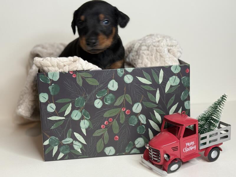 message lmaault about this ad -Athena is a beautiful, confident female Doberman with a strong yet elegant build and a naturally loyal temperament. Shes intelligent, attentive, and people-oriented, already showing the balance and presence the breed is known for. Raised with care and proper socialization, Athena will make an excellent family companion or a devoted guardian in the right home. -Karma is a bold and confident black and tan female with a strong stance and natural curiosity. She loves to explore her surroundings and is already showing early leadership traits. Karma is expected to mature into a powerful, loyal companion with a great temperament. -berman with an athletic build and a balanced, affectionate temperament. Hes curious, intelligent, and eager to bond, showing both loyalty and confidence at a young age. Raised with intention and proper handling, Apollo is well-suited for a family or an active home looking for a devoted Doberman. message lmaault about this ad |