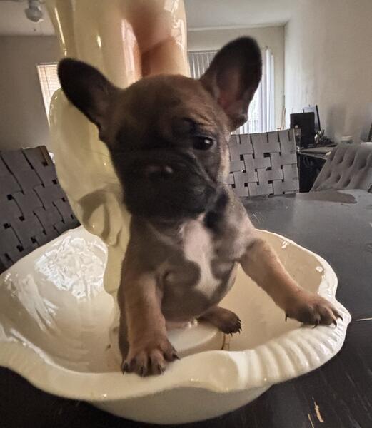message cjnknsh3046 about this ad Small compact French Bulldog. 1 girl left. She will be up to date with shots and dewormed on schedule. She will be 7 weeks next week. Contact Connie by text and then by call and video chat available if serious contact me . |