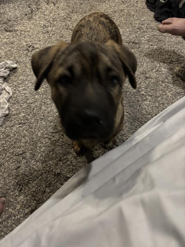 message jasper2019 about this ad 17 week old female Shar-Pei/Husky cross. Brindle colour. Shy at first, but very friendly and playful. Sweetest little soul. She gets along with other dogs and cats. She does like to chew things, but shes a puppy. |
