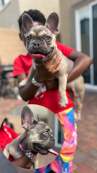 message kristyj about this ad Meet our gorgeous Lilac Fawn French Bulldog puppy! Shes 3 months old, healthy, and has the sweetest personality. With her rare lilac fawn coat and striking light eyes, shes truly one of a kind. Full-breed French Bulldog Rare Lilac Fawn coloring 3 months old, compact build Up-to-date on vaccinations & deworming Started on potty training Loves kids and other pets Well socialized and playful Rehoming fee: negotiable French Bulldogs are known for being affectionate, loyal, and the ultimate family companion. This little girl is ready for her forever home now! |