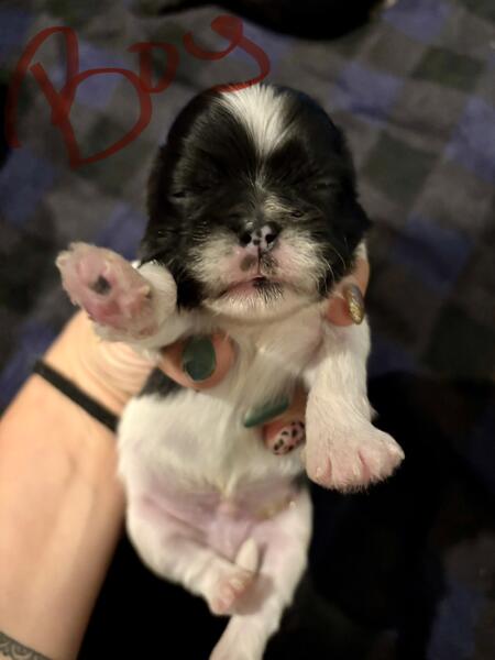Male Shih Tzu . Black and white in color. Will be vet checked, first set of vaccines and dewormed.
