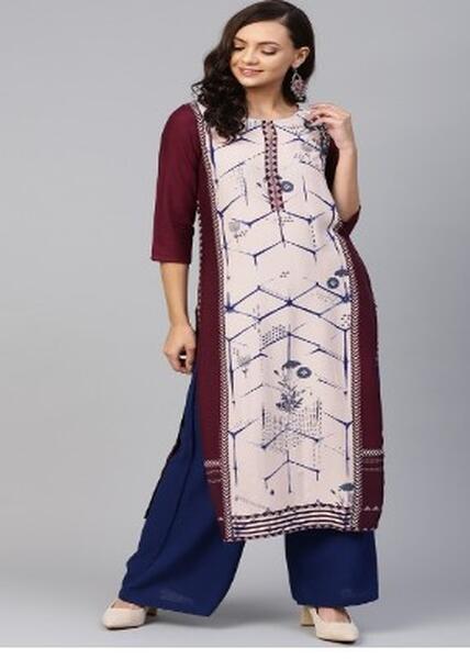 message rohinee about this ad Product Code: 9626015 Burgundy and off-white printed straight kurta, has a keyhole neck, three-quarter sleeves, straight hem, and side slits The model (height 5'8 is wearing a size S This exquisite kurta from W will help you maintain an elegant look all year long. For your next dinner party or family gathering, this burgundy piece pairs well with dark leggings and chic flats. Viscose Rayon Hand-wash httpsmyntr.it/9QbCh97 |