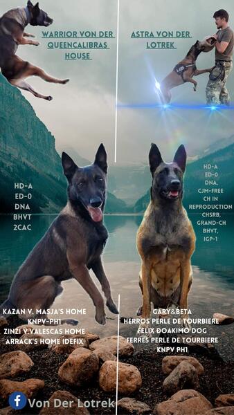 message susa about this ad Belgian malinois, male, 5 and a half months old, KNPV line. Mother Astra Von Der Lotrek HD-A ED-0 DNA CJM-free CHSRB Grand-CH Champion in reproduction BHVT IGP-1 Father Warrior Von der Queencalibras house HD-A ED-0 DNA BHVT, Ancestors: Kazan van Masjas Home KNPV PH1, Arracks Home Idefix, Felix OAKIMO Dog ( acted in the movie Everly) |