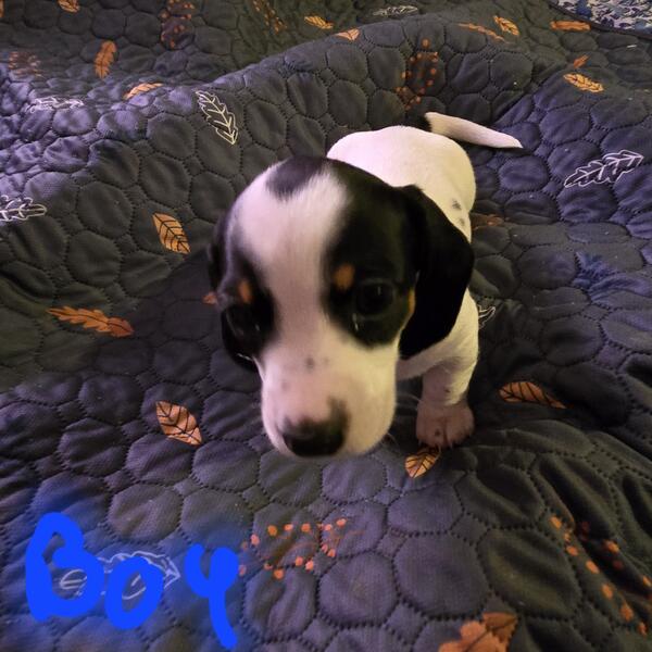 message ctwnd089 about this ad one male piebald beautiful marking white black tan they are ckc register will have the first shots and dewormed they will be ready first week in July 2025. |